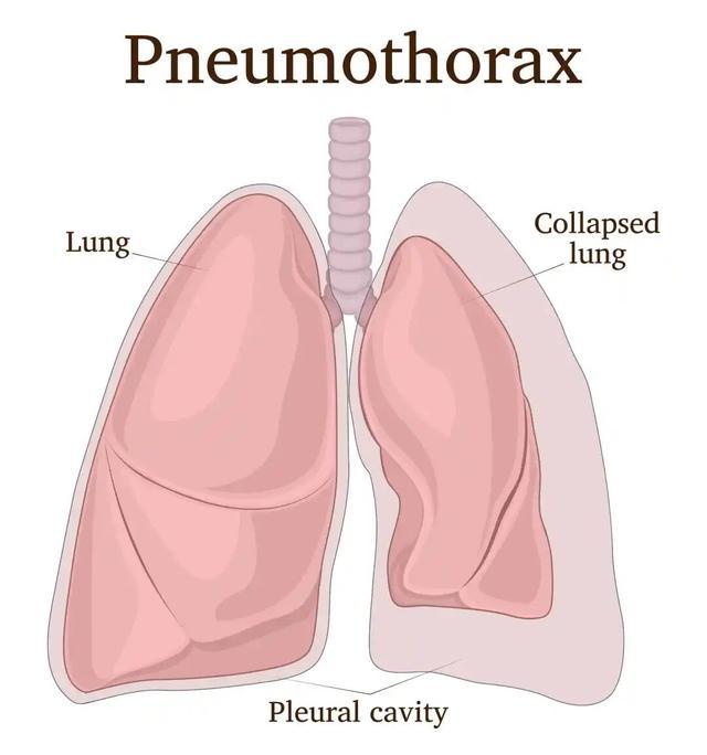 气胸导致肺组织塌陷,空气进入胸膜腔 | 站酷海洛