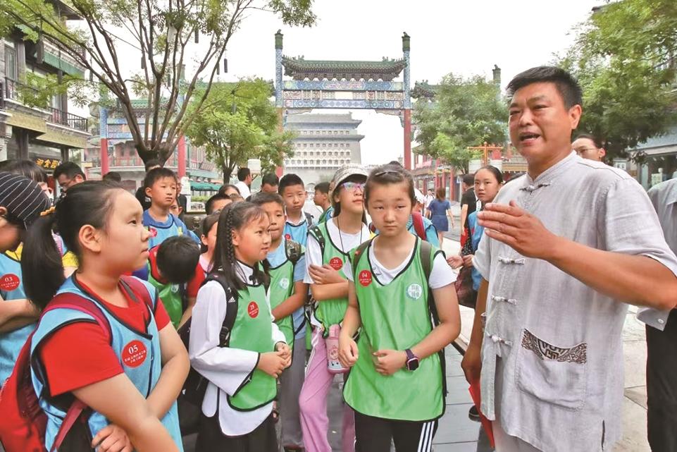 学生在前门大街参加“探秘北京中轴线”研学活动 中国旅游报记者 陈晨 摄